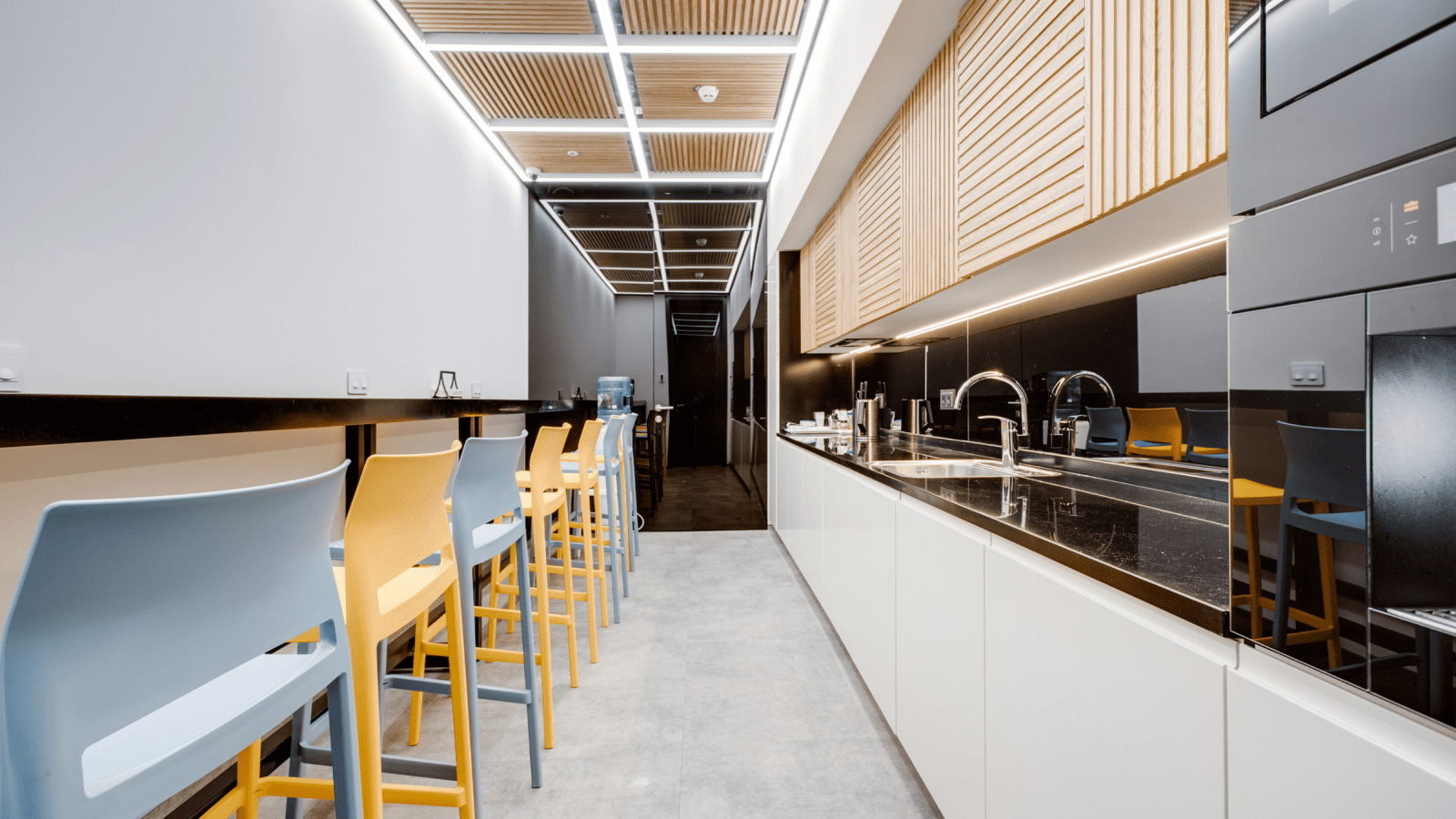 Главная идея — всё необходимое под рукой, ничего лишнего. В таком пространстве приятно работать, отдыхать и взаимодействовать с коллегами.